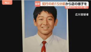「レジカウンターで接客しているところを襲われた春川さんは、首を中心に10数か所を刺されていた。店内の防犯カメラには、広川が手にした刃物で、意識を失うまで自分と春川さんを交互に刺し続ける様子が捉えられていた」(捜査関係者)