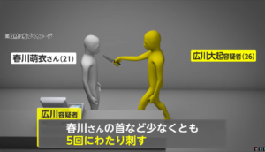 春川萌衣さんは首を中心に十数か所刺されていて、死因は失血死でした。そして、犯人の広川大起も自傷により死亡しています。