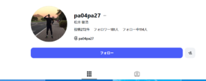 松井敏浩さんはインスタグラムのアカウントを持っています。アカウント名は「@pa04pa27」で表示名は「松井敏浩」になっています。