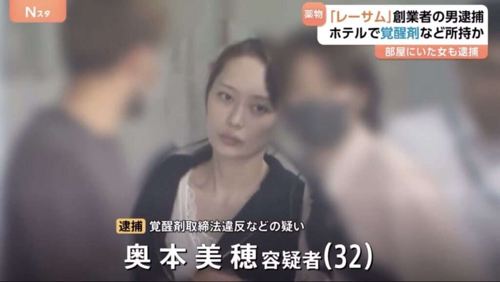 奥本美穂は、レーサムの元会長・田中剛と共に覚醒剤やコカインを所持していた容疑で2025年5月12日に逮捕された女性です。