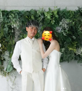 また、結婚発表と共に和装と洋装の結婚衣装を着て、夫婦2人で撮った写真をアップしましたが、山崎円美さんはとてもカッコよかったですし、奥様はスタンプで顔が隠れていましたが、華奢で色白できれいな方であることがわかります。